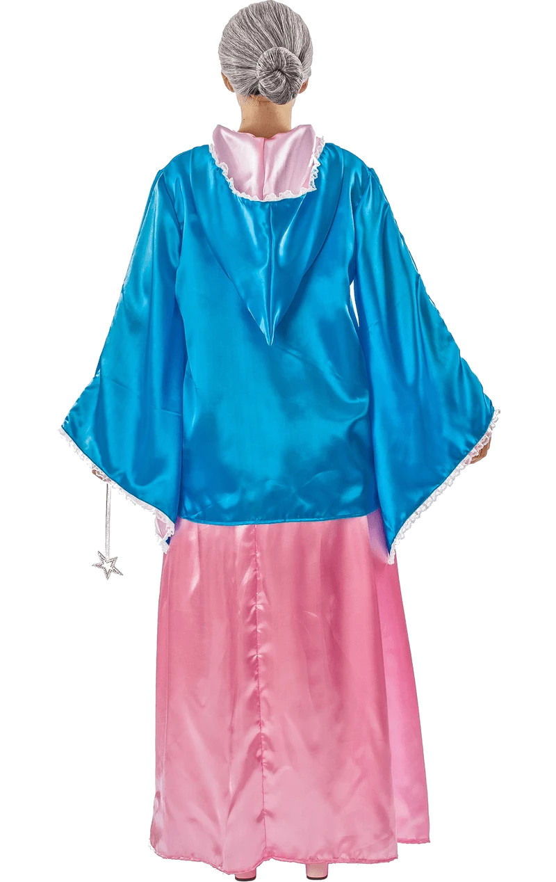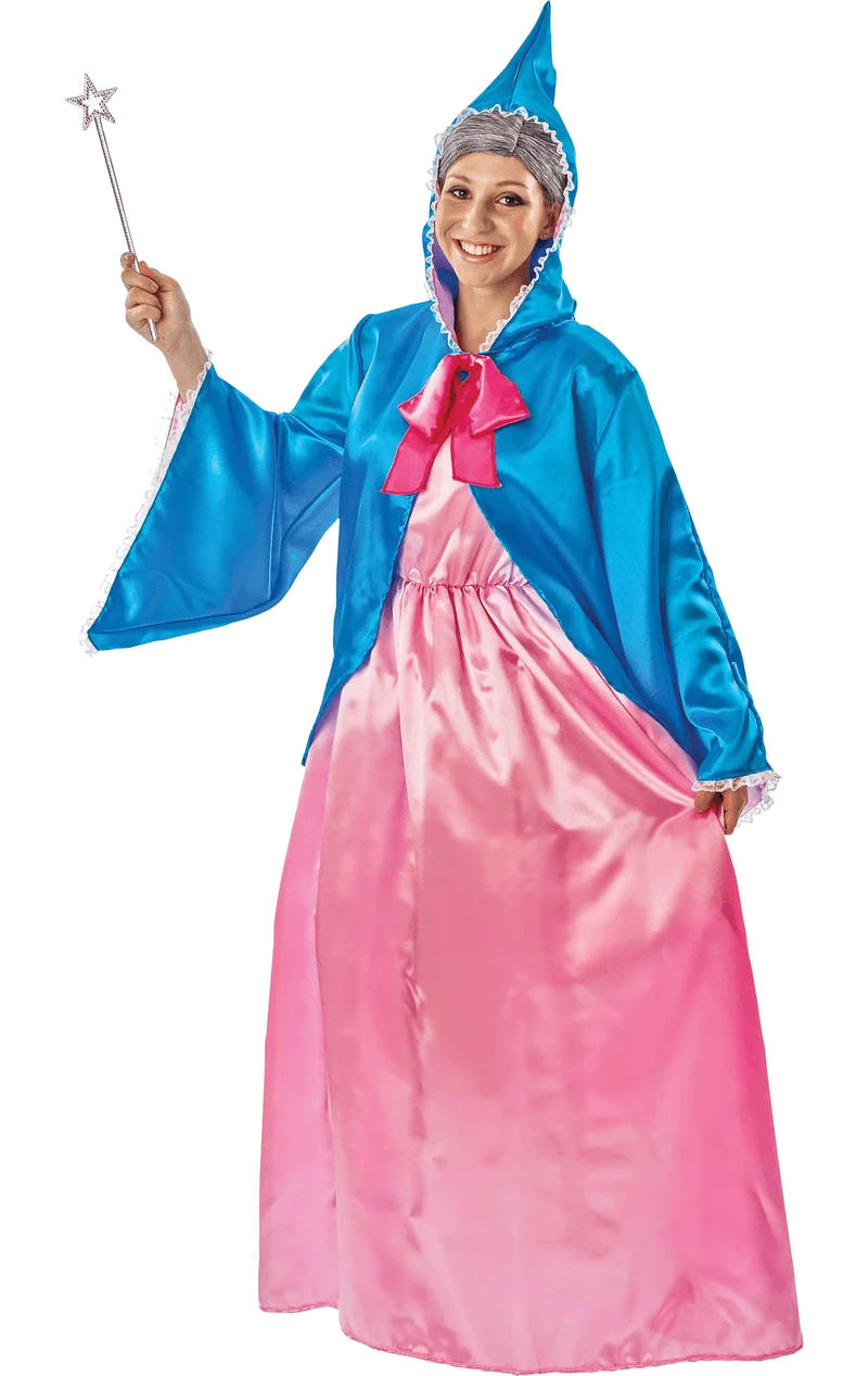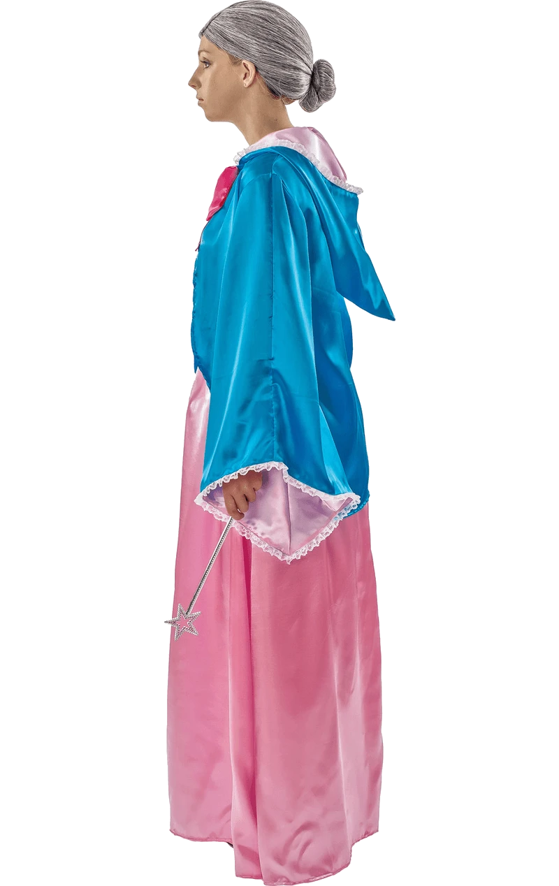 The Adult Fairy Godmother Book Day Costume is made up of a pale pink floor-length dress. It features a royal blue hooded shawl that’s trimmed in white lace, and a bright pink bow that’s tied at the neck. Completing the look is a grey wig, and of course, the all-important magic wand so. You’ll really can make dreams come true!