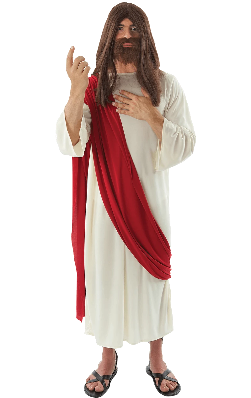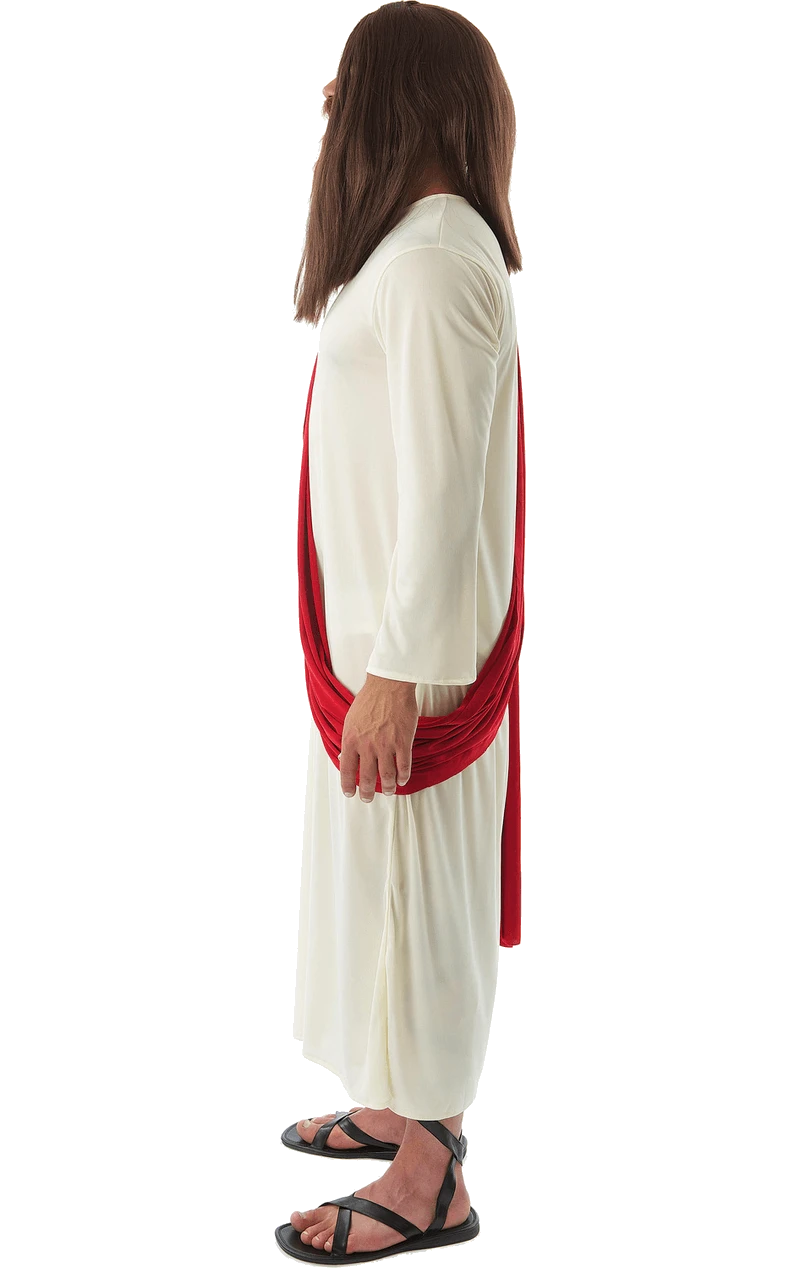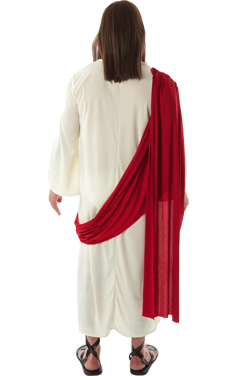 The Adult Jesus Robe Costume comes complete with a light robe, with a red draped material that sits over the shoulder. If you want to go all out on this ultimate Jesus look, then don’t forget to pop on your holiday sandals and grab our wig and beard set.