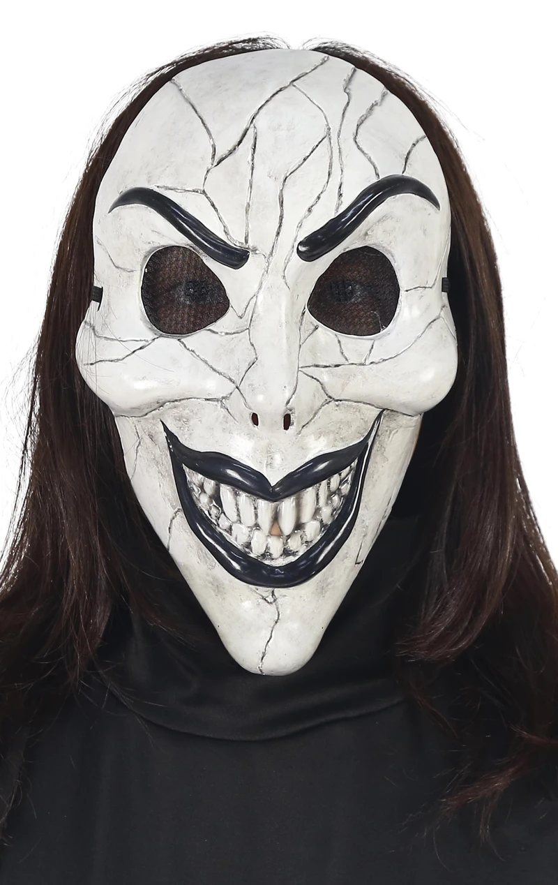 The Scary Halloween Mask features a long, ill-looking white mask with black lines to represent cracks on the face. Don’t mistake their smile as a ‘I’m going to get you’ smile, as his big black teeth say it all! Team it up with a black hood to make your look even more haunting!