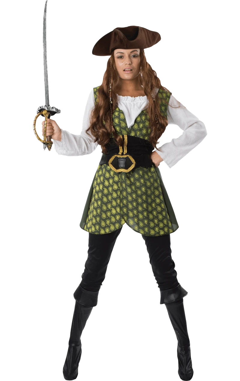 Our Adult Womens Pirate Fancy Dress Costume is a beautifully designed pirate costume for women that comes with plenty of accessories, giving it an authentically detailed swashbuckling style that looks great while being comfortable to wear.