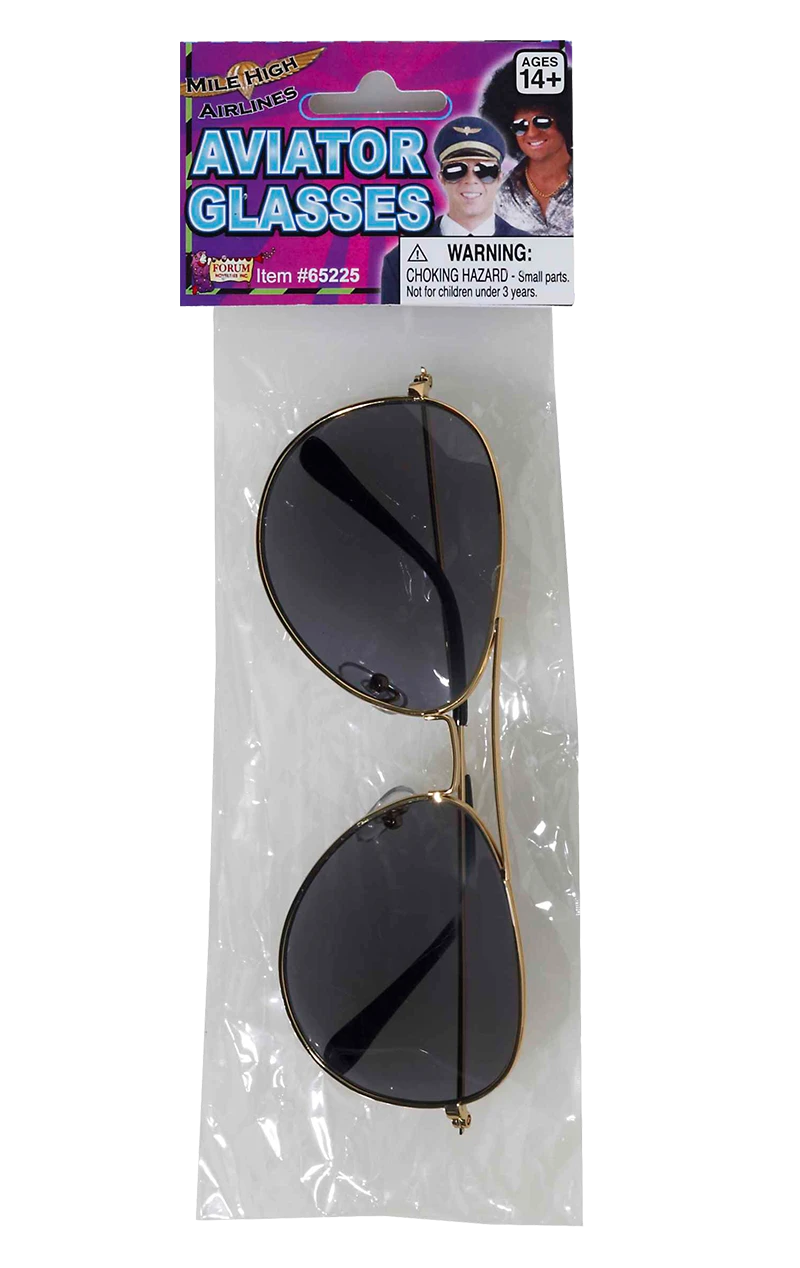 Complete your pilot or 80s Top Gun look with our stylish black Aviator sunglasses with gold frames. These are great for protecting your eyes when flying at supersonic speeds!