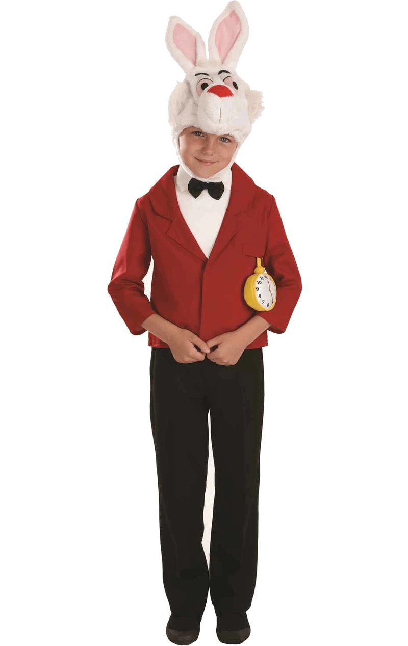 Our Childrens Alice in Wonderland White Rabbit Costume features a smart red jacket with a built in shirt front and bow tie. This makes this costume lightweight and easy to wear. Attaching to the jacket is a plush, 3D pocket watch to ensure that they are on time to the party.