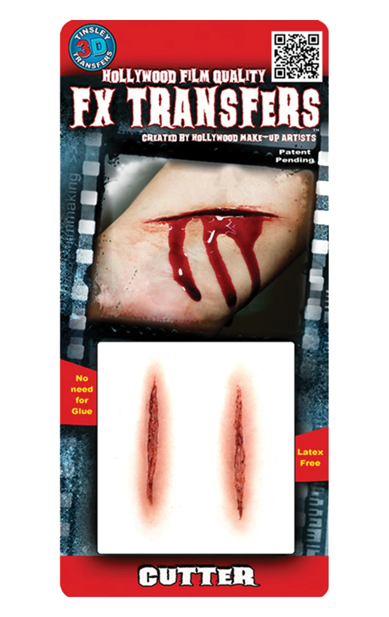 Wow! That will be the reaction of shocked Halloween party goers as they gasp at your oozing wounds! They won’t be real of course because you’ll have used the Cutter 3D FX Transfers, but the effect will be exactly the same as if they were!