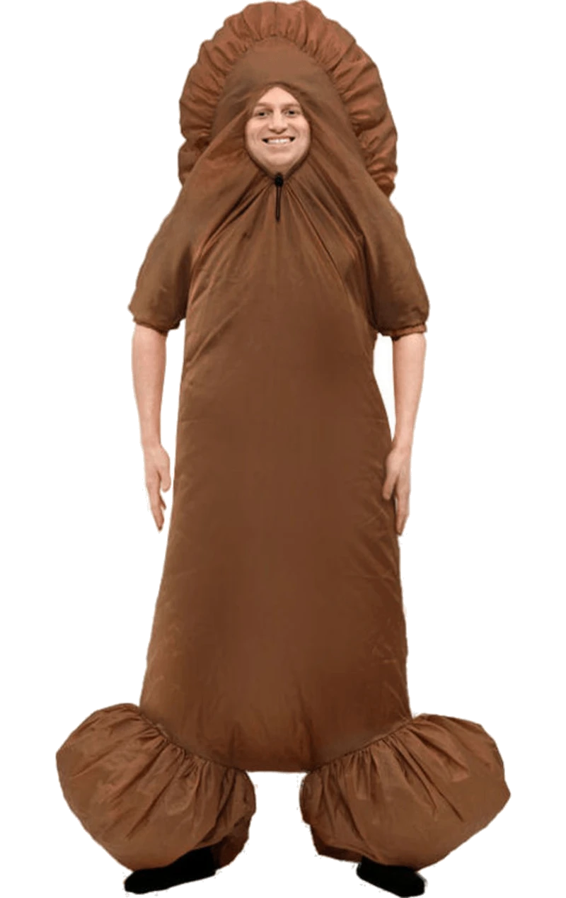 This exclusive King Ding Penis Costume consists of an inflatable brown penis bodysuit, with a hole for your face. It also includes a battery operated fan, which ensures full inflation all night long, so you’ll never run the risk of looking floppy.