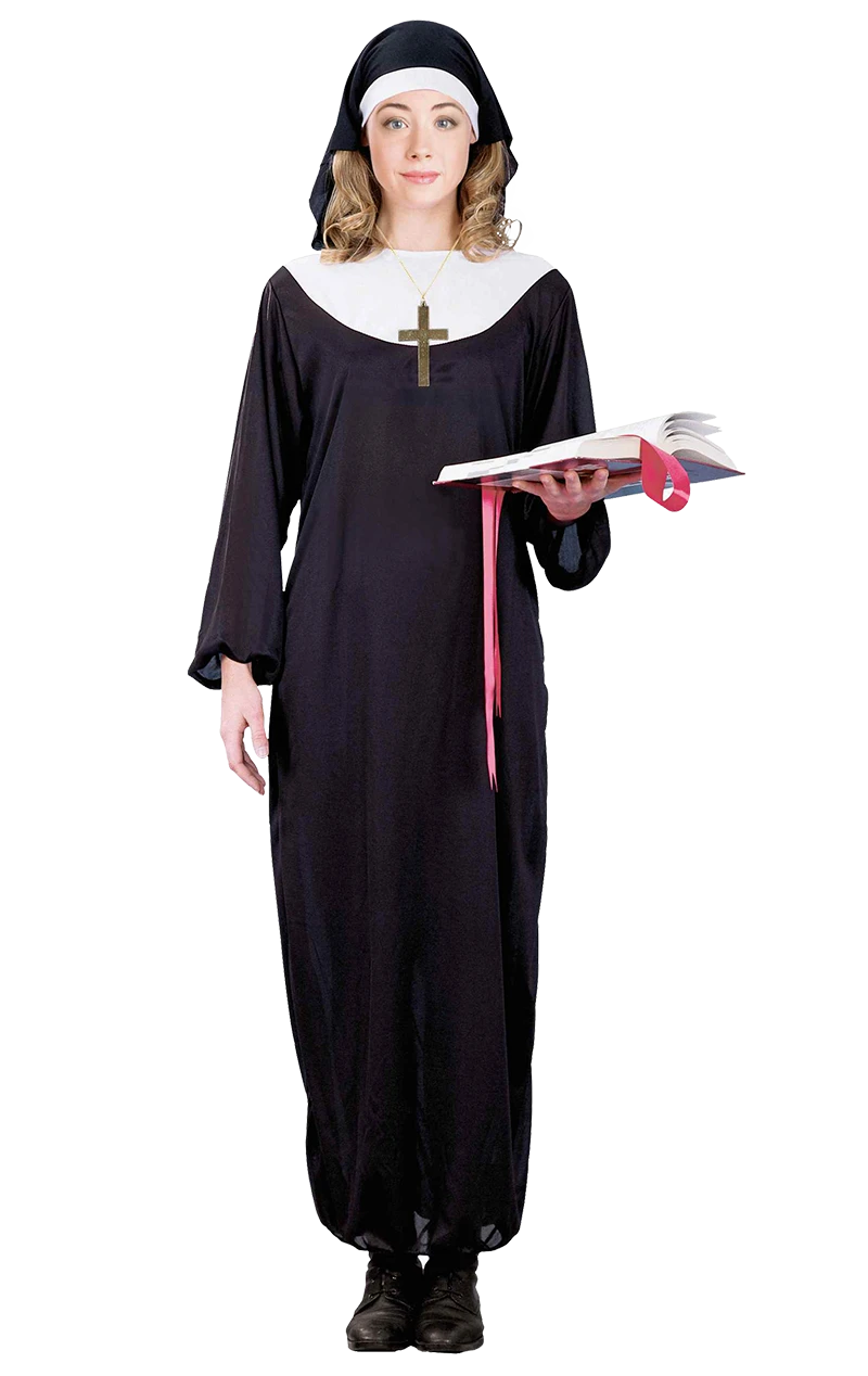 Transform yourself into a nun in an instant in this easy-to-wear black habit with headpiece. Whether you’re after a zombie Halloween nun look or a more traditional Sound of Music style outfit, our Instant Nun Accessory Kit is a competitively priced religious answer.
