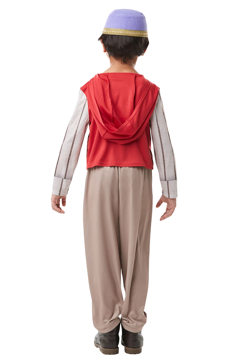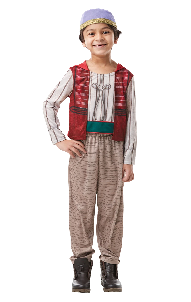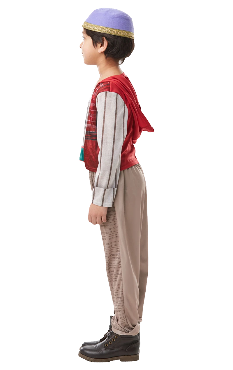 Our Kids Live-Action Aladdin Costume comes complete with an off-white-coloured top and attached jacket, a pair of beige trousers, and we can’t forget about Aladdin’s signature accessory, his hat.