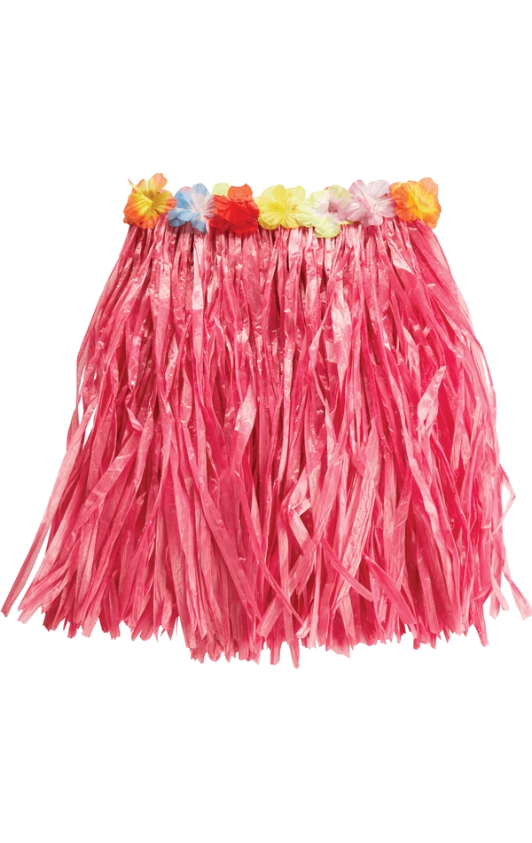 Celebrate summer with our fabulous Pink Hawaiian Skirt. This skirt has an elasticated waistband for a comfortable fit and is decorated with multicoloured faux flowers.