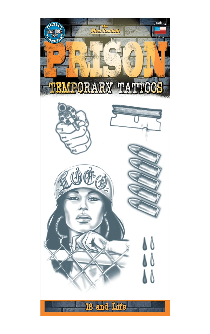 You’ll look every inch the menacing convict with these prisoner inspired tattoos, featuring skulls, clowns and guns. Easily applied with water, these are high quality, long lasting tattoos that look great worn on the arm, leg or ankles.