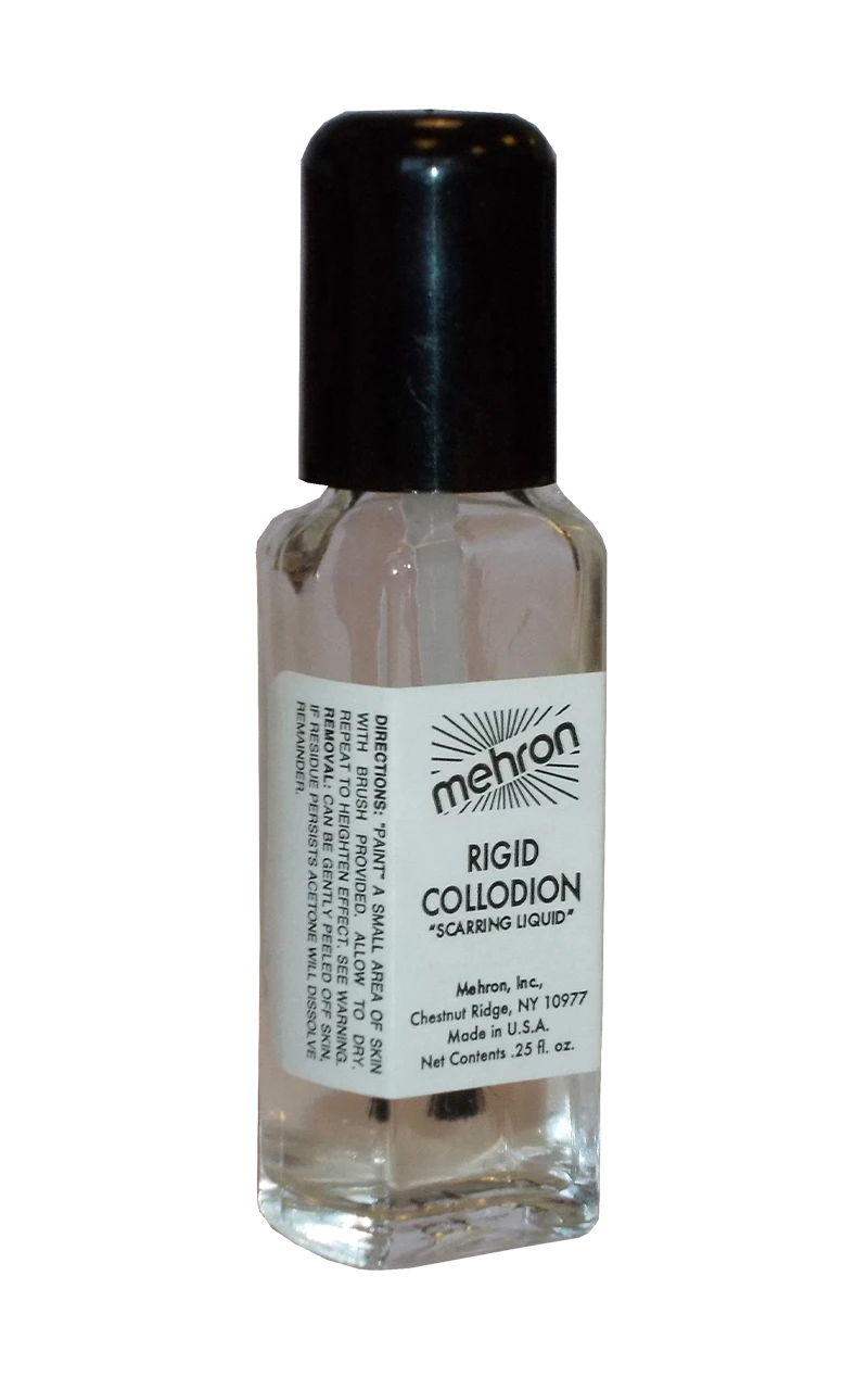 This Rigid Collodion Liquid is an essential solution for special effects makeup and comes complete with a brush for easy use.Â
