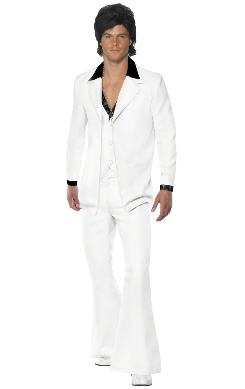 Become the king of the dance floor with this exceptional 70s White Suit. Throw some shapes and impress the ladies as you boogie the night away to some classic disco tunes in this Saturday Night Fever inspired suit.