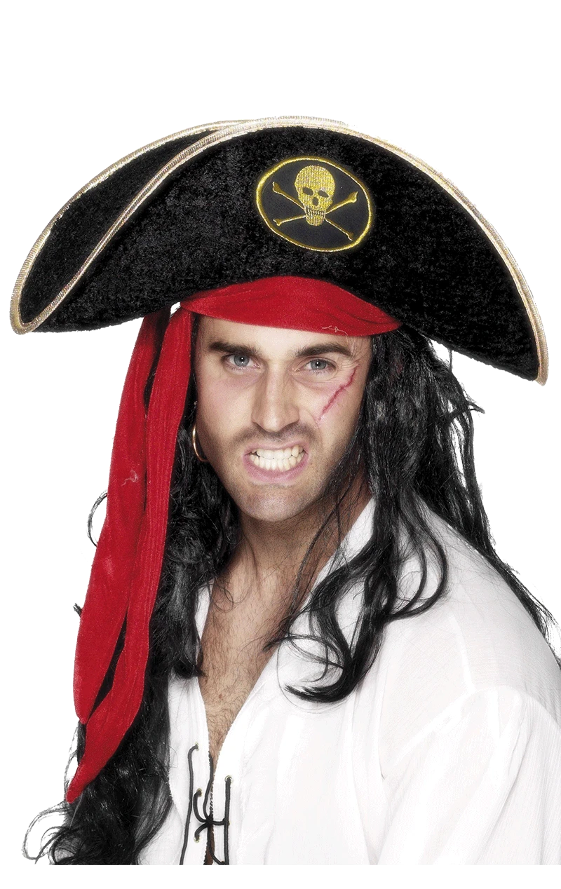 If you’re captain of the crew, you need a special pirate hat! This Black Velour Buccaneer Hat Accessory comes with a gold trim and skull and crossbones emblem.